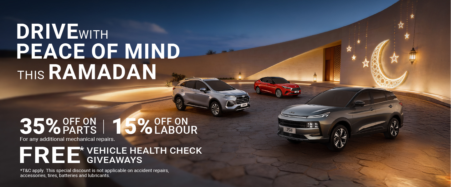 Celebrate Ramadan and enjoy exclusive savings with our special JAC aftersales offer. Drive with Peace of Mind This Ramadan